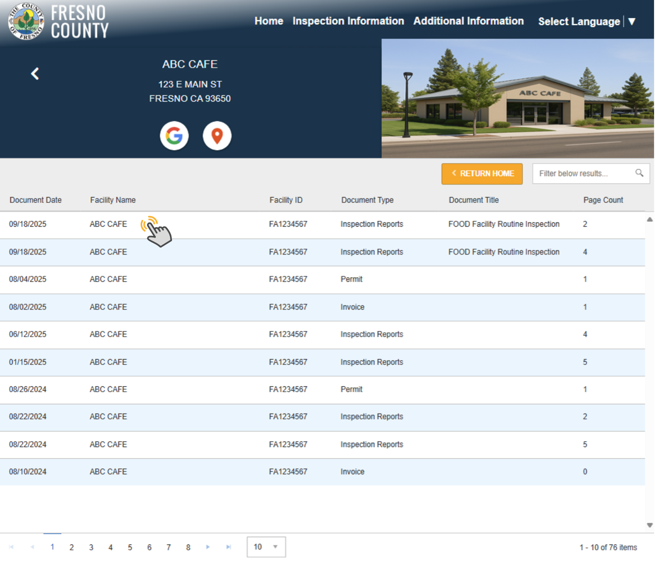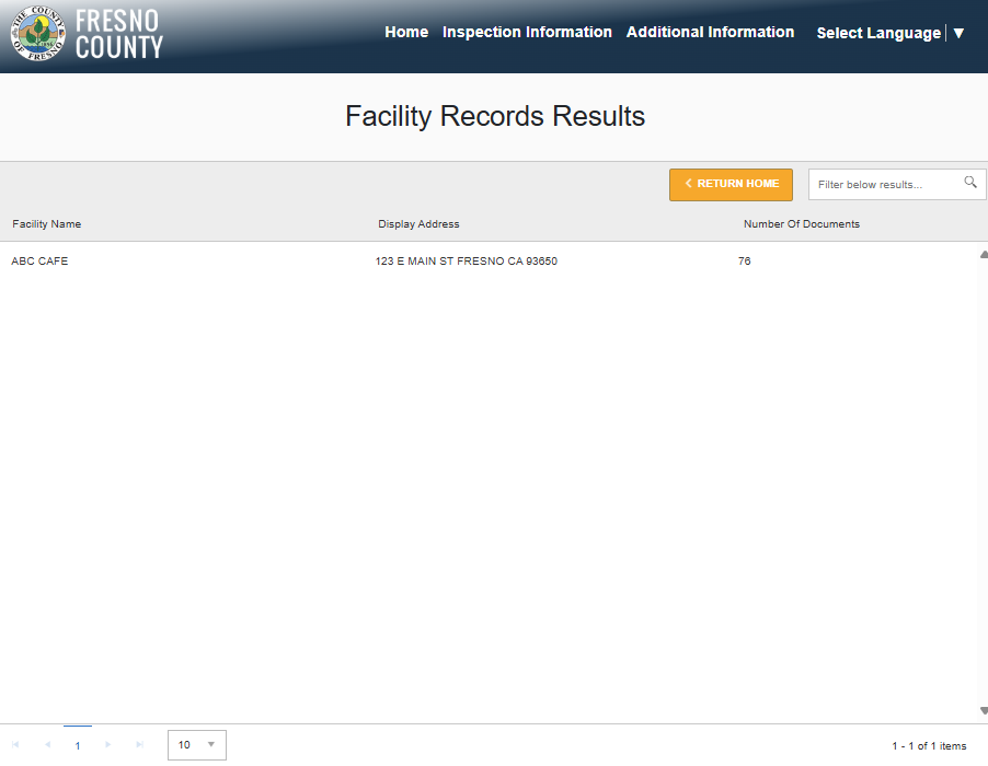 Fresno County and Incorporated Cities Businesses only: Lastly, inspection information is only available for the categories listed within Fresno County, either in an unincorporated area or in one of the incorporated cities.